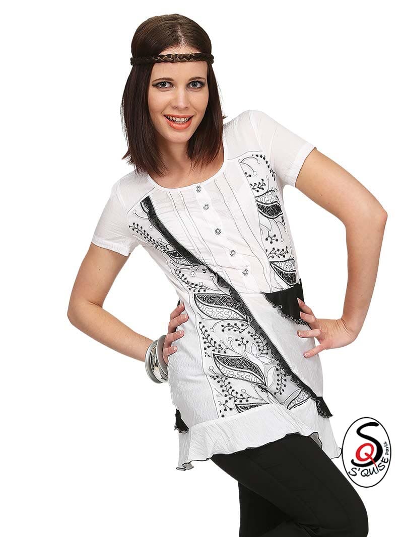 Tunique bicolore résille brodée CELESTE