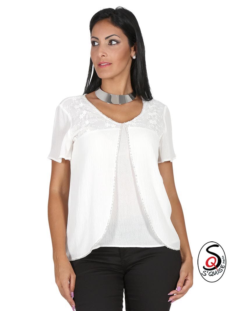 Top uni effet brodé BOSTON